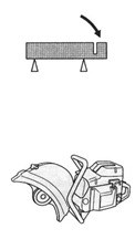 當(dāng)心!鋸軌機(jī)在使用過(guò)程中或剛剛使用過(guò)后,消音器上的溫度是很高的。在消音器很熱時(shí)請(qǐng)不要觸摸。