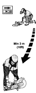 當(dāng)心!鋸軌機(jī)的安全距離是15米。您有責(zé)任注意觀察在此范圍內(nèi)沒(méi)有工作人員亦沒(méi)有任何動(dòng)物。在工作現(xiàn)場(chǎng)準(zhǔn)備就緒和站穩(wěn)以前,永遠(yuǎn)不要開(kāi)始操作。